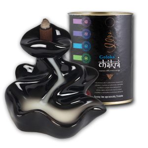 Különleges füstölőkúp, melynek füstje lágyan, vízesésszerűen folyik le az erre a célra készített füstölőtartó medencéjébe.