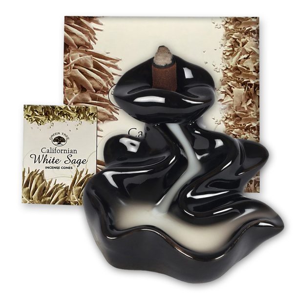 Visszaáramló füstölőkúp égető Folyó, Green Tree White Sage visszaáramló kúpfüstölő szett